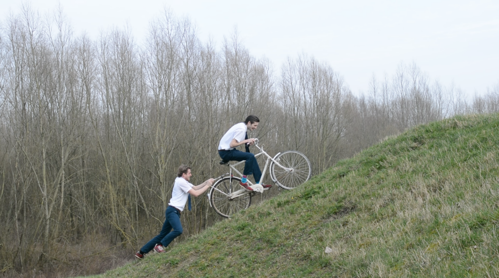 The project DND, DNFB, DNS is an homage to human imperfection and a re-evaluation of daily struggles, mediocrity, and purposelessness. In a series of films, Frank and Michiel respond to the human rights of Uzupis (Vilnius, Lithuania), a constitution made up of 41 rules. Do Not Defeat is an ongoing project. The series will only be complete once all 41 rules have been filmed.